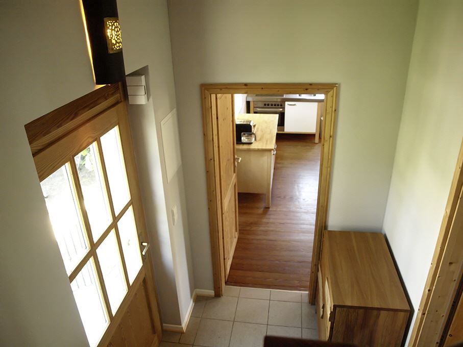 Der Wohnbereich erstreckt sich über zwei Etagen in einem ehemaligen Wirtshaus mit viel Charme. Wir haben das Haus in Eigenregie renoviert und ausgebaut.