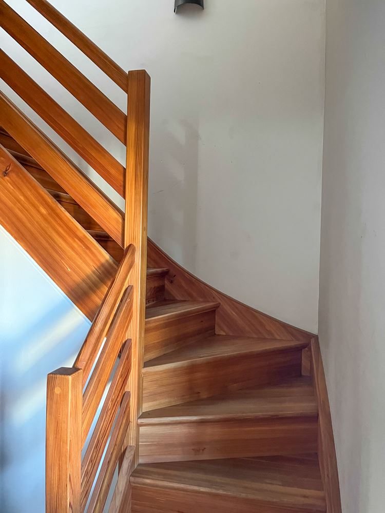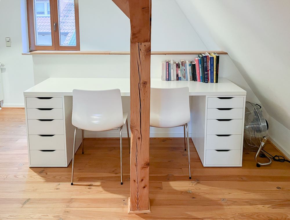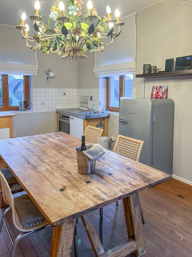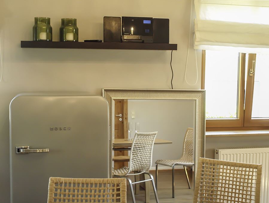 Der Wohnbereich erstreckt sich über zwei Etagen in einem ehemaligen Wirtshaus mit viel Charme. Wir haben das Haus in Eigenregie renoviert und ausgebaut.